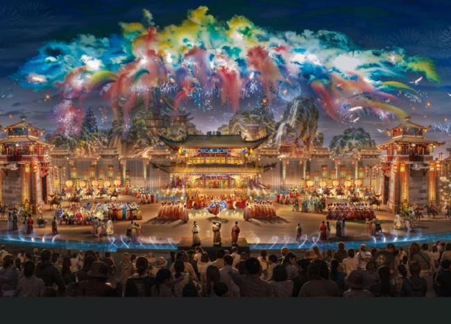 大型情景六感室内演艺秀《国秀・琅琊》:超大型舞美道具装置搬上舞台,设有2600座;创新使用LED屏,复原古代乐器;实现水火交融,带来震撼体验。
